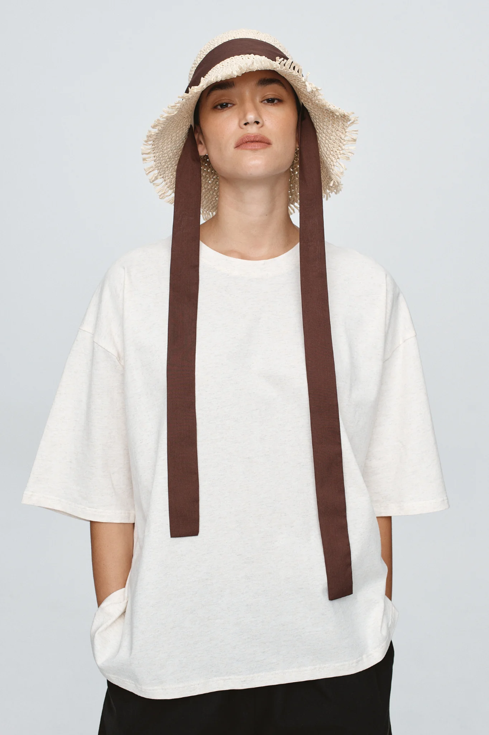 The Sobo Hat is a sculptural wide-brim style woven from lightweight paper straw. It features a structured yet pliable shape that provides sun coverage and a relaxed drape at the brim edge. A wide grosgrain ribbon encircles the crown and extends into long ties that can be fastened beneath the chin or left to fall freely for a fluid, effortless finish.
