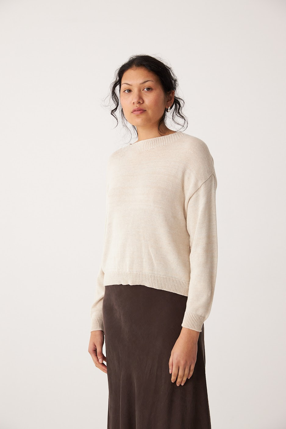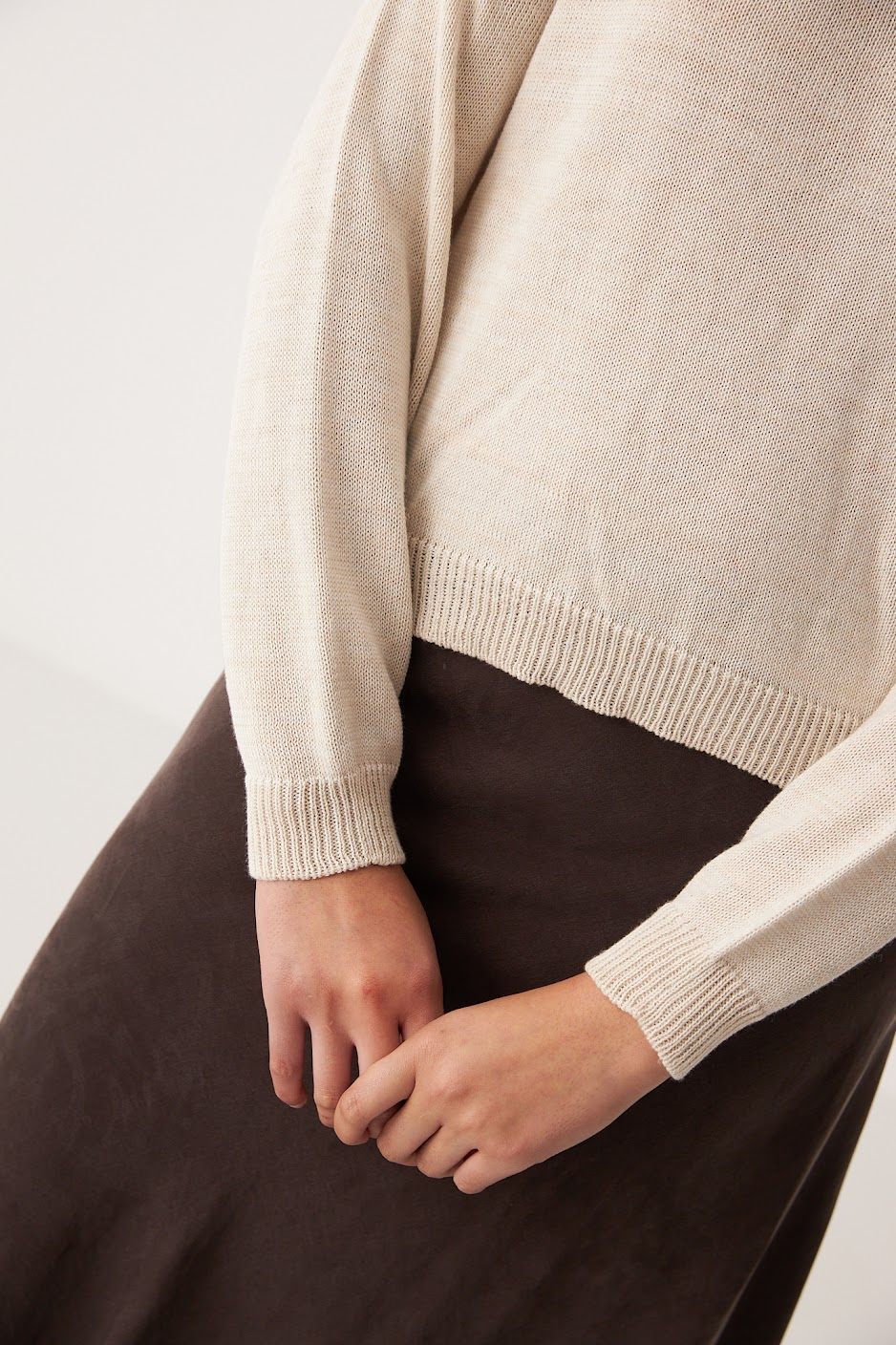 Throw on the soft egyptian cotton Pebble knit. It is an effortless, breathable piece for everyday comfort. Designed to be a true wardrobe cornerstone that can be worn with shorts on the beach in summer or layered under a trench in autumn. Cotton does stretch a bit after wearing, just give it a wash to bring it back to it's original size (Just like your favourite pair of jeans)