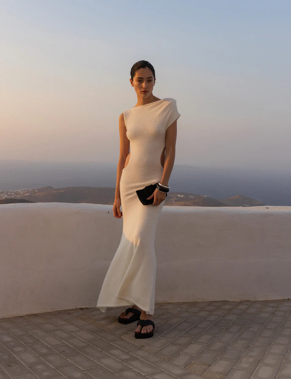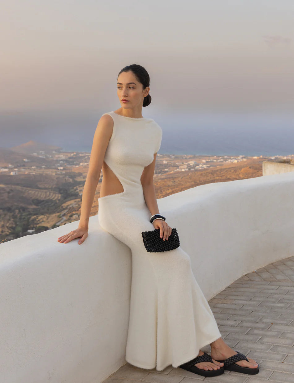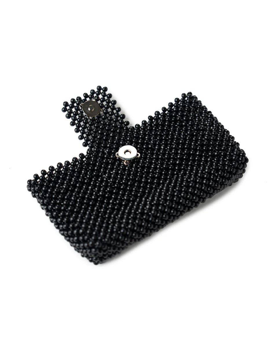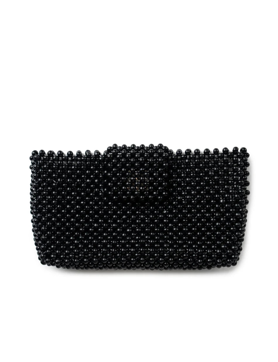 Sculptural and tactile, the beaded clutch captures the art of natural luxury. Features hand-woven wooden beads and a magnet closure.